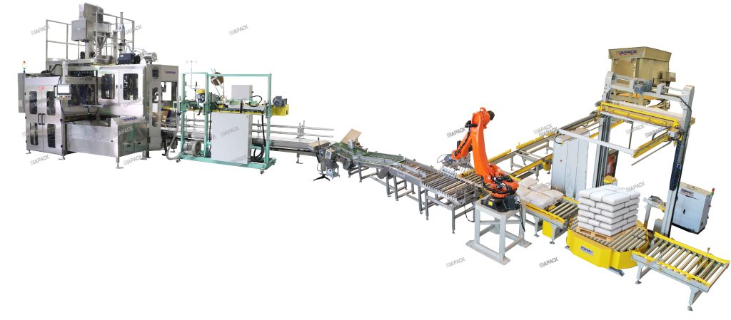 10-25 kg pakend, mahuga 1000 kotti / h (vastavalt erinevatele kottidele, toorainele)