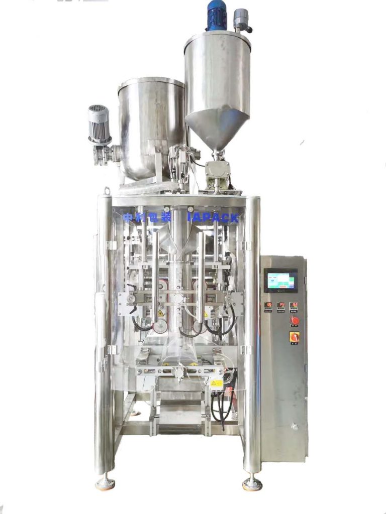See seade töötati välja vedelate ja viskoossete toodete jaoks. Seade koosneb vuugimismasinast ja pakendamismasinast; pakendamismasinal on lihtne struktuur ja seda on lihtne kasutada; masin integreerib kottide valmistamise, täitmise, sulgemise ja loendamise funktsioonid. See kasutab kile tõmbamiseks servomootorit ja sellel on automaatne kõrvalekalde korrigeerimise funktsioon.