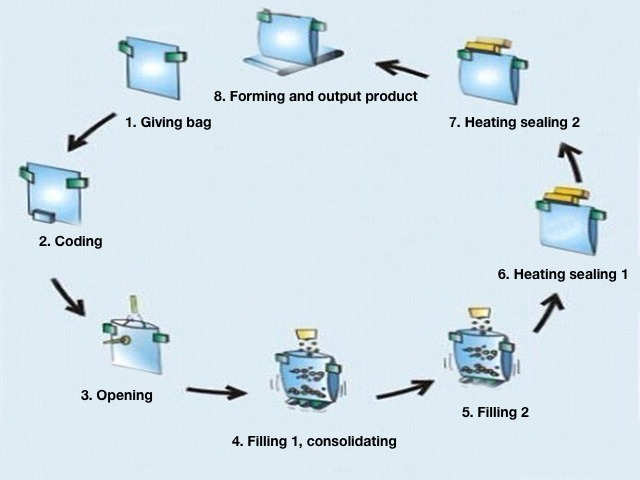 - Sissejuhatus: see seademasin on spetsiaalse disainiga vedelate ja tahkete segude pakendamiseks kilekotti. Masina funktsioon on automaatne koti moodustamine, tahke toote kaalumine, vedelate toodete mõõtmine ja täitmine. seejärel sulgege kott. Masinal on ka värviline lint kuupäevaprinteri jaoks aegumiskuupäeva ja tootmiskuupäeva kodeerimiseks.