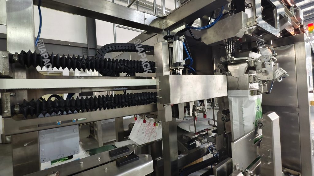 For secondary packaging (auto putting the small pouches into PP woven bag):
