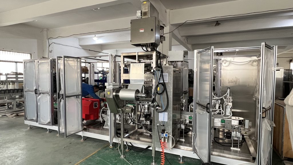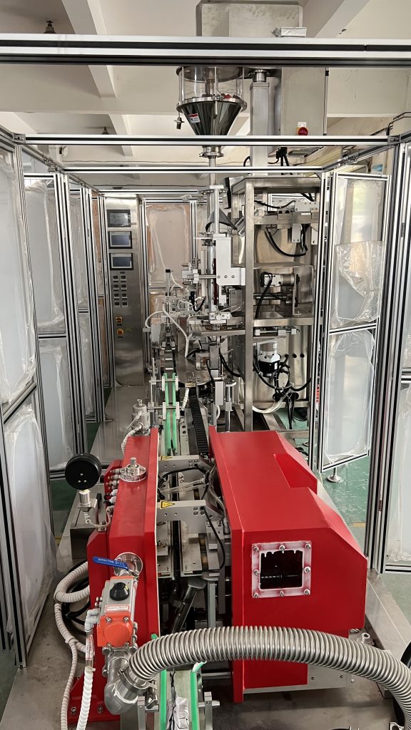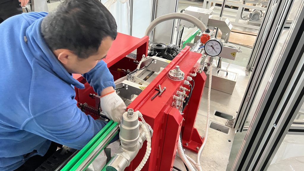 Meie klient Iraanist oli tellinud ühe komplekti automaatse telliskivist vaakumkotti moodustava täidispakendamise masina 250 grammi kohvipulbri jaoks. Ja järgige kliendi nõuet, mille järgi olime vaakumkambri hoiatuseks värvinud punaseks.
