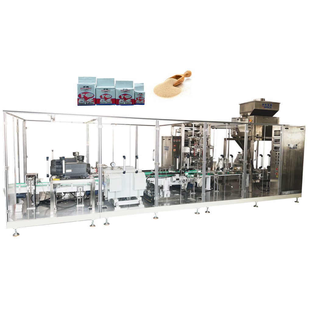 See masin sisaldab ühte komplekti ZK3 vaakumtõstukit kuivpärmi söötmiseks, ühte komplekti ZL520 vertikaalsete kottide pakkimis- ja sulgemismasinat. ühte komplekti ZLC4-2000 nelja ämbriga kaalumasinat, ühte komplekti ZL-100V2 kahe vaakumkambriga pakkimismasinat. Seda masinat kasutatakse laialdaselt toiduapteekide kemikaalide ja muude toodete pakkimiseks pulbrisse või väikestesse graanulitesse. Nagu kohvipulber, pärmipulber nisujahu ja nii edasi. Kogu masin pumpab seest vaakumtoote. Vaakumaste on väga kõrge ja pakkimiskiirus on väga kõrge, võib ulatuda 30 kotti/min. Valmistootel on pikk säilivusaeg ja ilus kuju.